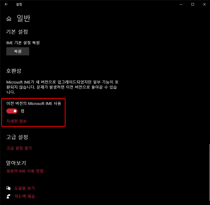 | [ 윈도우 10 ] 일본어 '이전 버전의 Microsoft IME 사용' 설정 (1) | 2020.11.02 |